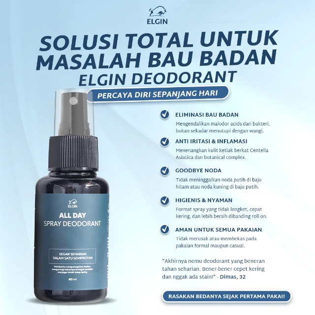 Jadi, Elgin Deodorant nggak hanya menahan bau. Tapi menyelesaikan masalah dari sumbernya.